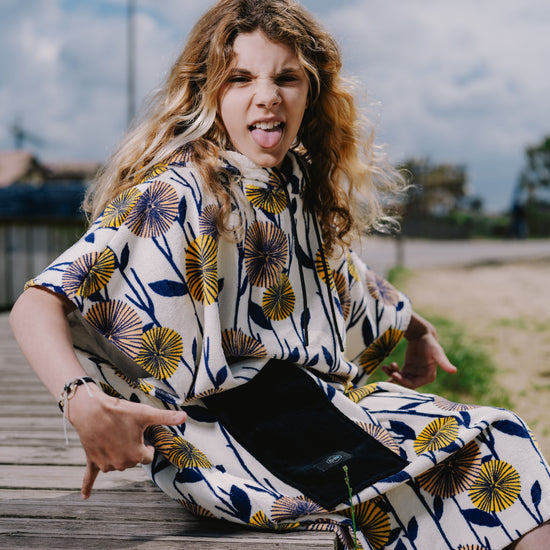 Idéal pour les kids qui veulent être stylés en sortant de l’eau, sans faire l’impasse sur le confort et la douceur. Grâce à sa forme triangulaire ou « en V », le haut de ce poncho est plus large que sur des modèles classiques, pour faciliter le mouvement au niveau des bras et des épaules. Plus pratique pour se changer, et chaleur et absorption conservées grâce au tissu éponge velours 100% Coton Organic et aux manches allongées, c’est pas le top ça ? Allez, on ajoute la cerise sur le gateau : une capuche doublée, une grande poche refermable devant et 2 poches sur les côtés. Votre ado va adorer…