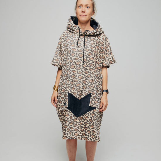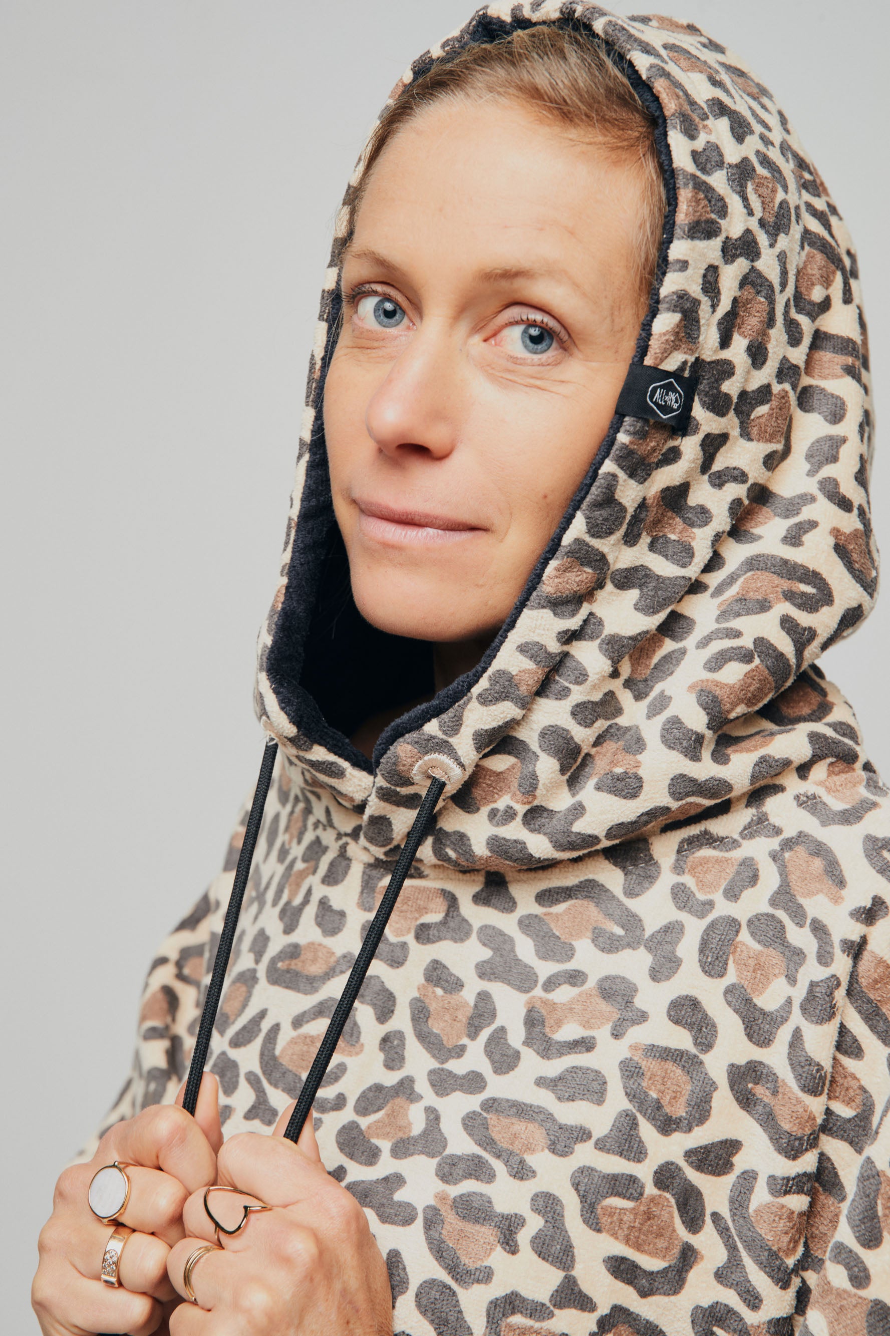 Grâce à sa forme triangulaire ou « en V », le haut de ce poncho est plus large que sur nos modèles Classic. Et toujours aussi doux et confortable (éponge velours 100% coton) ! Nous avons créé ce poncho pour vous garantir une plus grande liberté de mouvement au niveau des bras et des épaules. Plus pratique pour se changer et chaleur conservée grâce aux manches allongées, c’est pas le top ça ? Allez, on ajoute la cerise sur le gateau : une capuche doublée et 2 grandes poches sur les côtés. On se doutait que ça allait vous plaire…