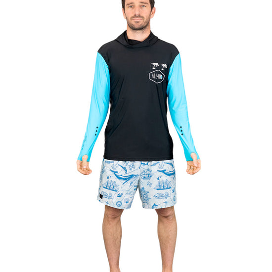 Surf-Lycra mit Kapuze für Männer - Schwarz / Türkis