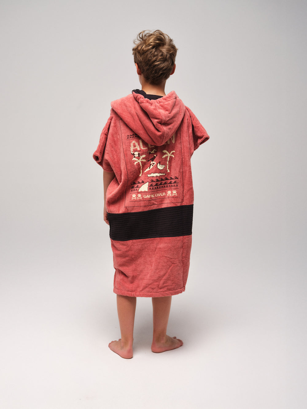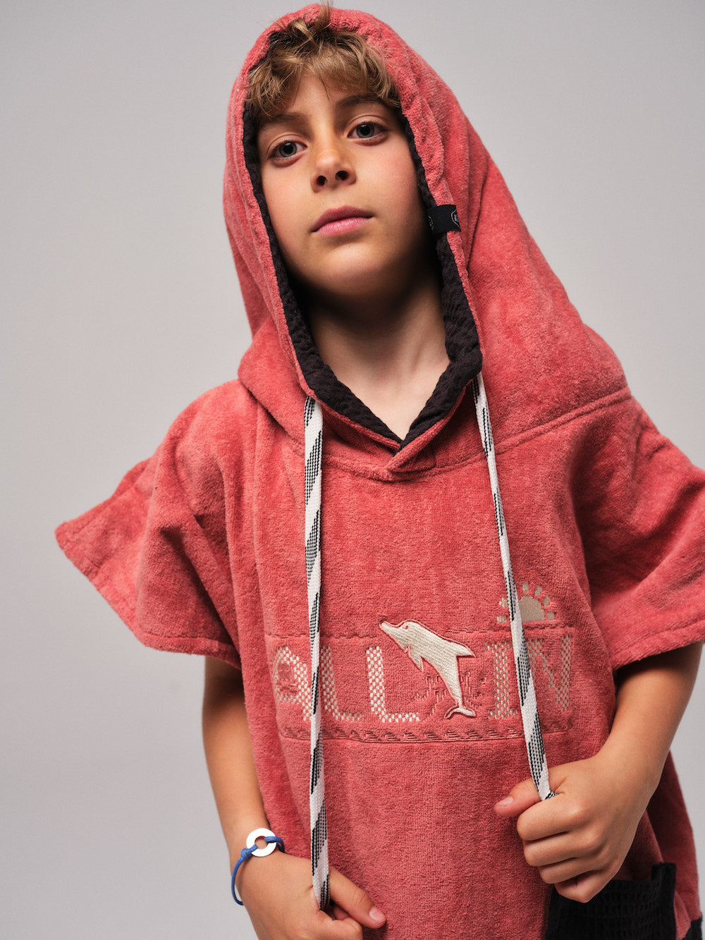 Ideal für Kids, die stylisch aus dem Wasser kommen wollen, ohne dabei auf Komfort und Weichheit zu verzichten. Dieser klassische Poncho mit seinem geraden, lockeren Schnitt bietet Bewegungsfreiheit und bewahrt gleichzeitig Wärme und Privatsphäre. Er eignet sich perfekt zum diskreten Umziehen und ist dank seines Velours-Frotteestoffs aus 100 % Baumwolle und seiner verlängerten Ärmel ultrabequem.