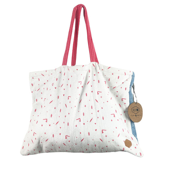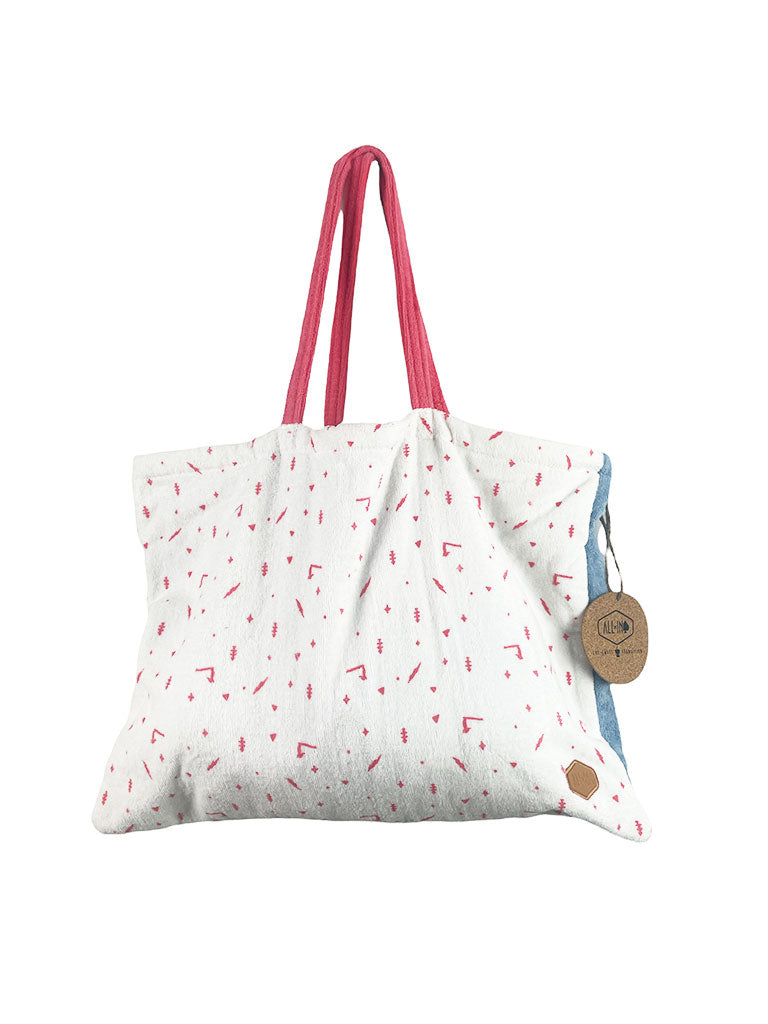 Diese Tasche entstand aus einer Feststellung heraus: Wir wollten die Stoffreste, die bei der Herstellung von Ponchos anfallen, nicht wegwerfen. Es ist viel umweltfreundlicher, daraus eine Strandtasche zu machen! Die Tasche aus 100% Baumwoll-Frottee-Velours vereint Robustheit, Weichheit und Saugfähigkeit und eignet sich für nasse Badeanzüge, feuchte Anzüge, Leash nach der Session, Strandspielzeug... Sie vereint großes Fassungsvermögen mit geringem Gewicht und die beiden Henkel sind zum Tragen über der Schulter geeignet. Das farbenfrohe Accessoire, das Ihnen einen schönen Sommer bescheren wird!