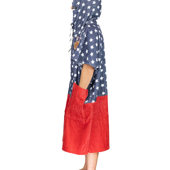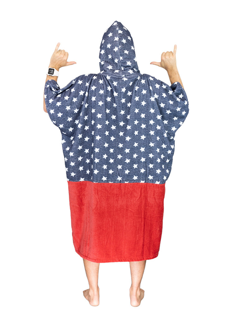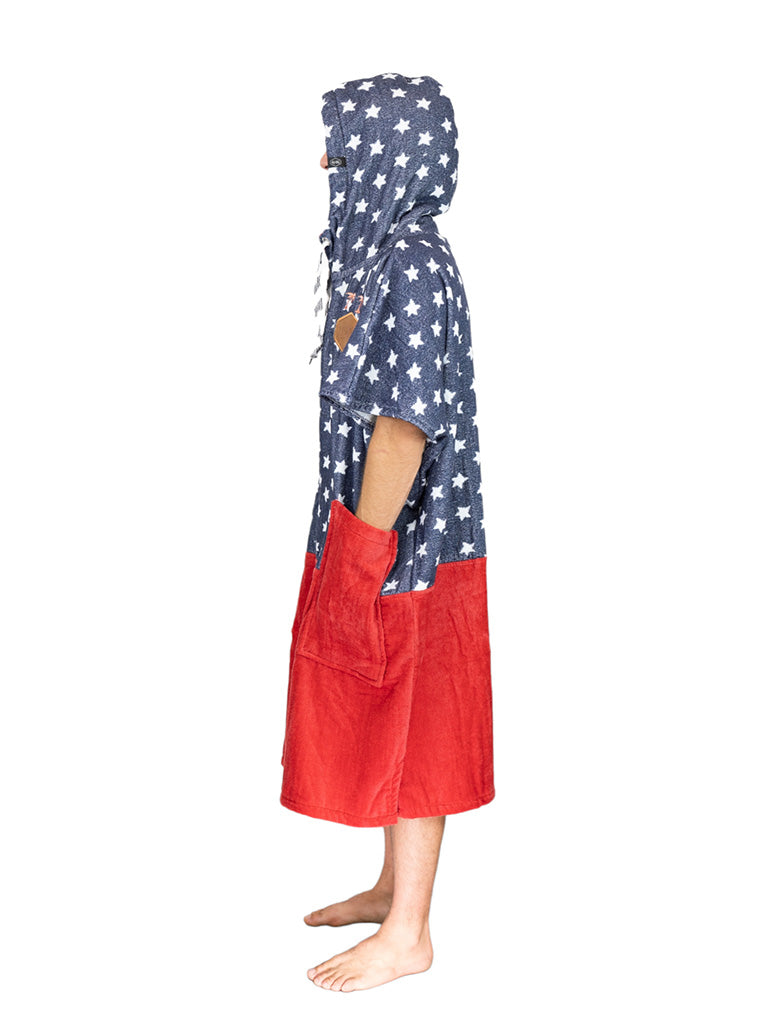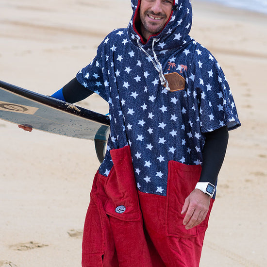 Ob Erwachsener oder Kind, wenn Sie noch keinen Badeponcho zu Hause haben, dann mögen Sie es weder bequem noch praktisch! Um sich nach einem Bad am Strand, im Schwimmbad, zu Hause oder nach einem Saunabesuch abzutrocknen. Zum Umziehen und zum Schutz vor Blicken und Kälte im Winter nach dem Surfen, Wakeboarden, Kitesurfen, Windsurfen... Zum Chillen nach dem Duschen auf dem Campingplatz, zu Hause oder auf Reisen. Sie sind saugfähig, warm, weich und bequem zugleich. Es gibt sogar ein wasserdichtes Modell, um dem Regen zu trotzen, und eine 2-in-1-Version, die sich in ein Strandtuch verwandeln lässt. Entdecken Sie die Ponchos für Männer (normal oder XL - große Größen), Frauen, Junioren und Kinder (mit den kleinen Bärenohren an der Kapuze, so süß), mit oder ohne Ärmel. Zögern Sie nicht länger und tauschen Sie Ihre Bademäntel und Frotteehandtücher gegen einen Poncho aus 100% Baumwolle, der in Frankreich entwickelt wurde!