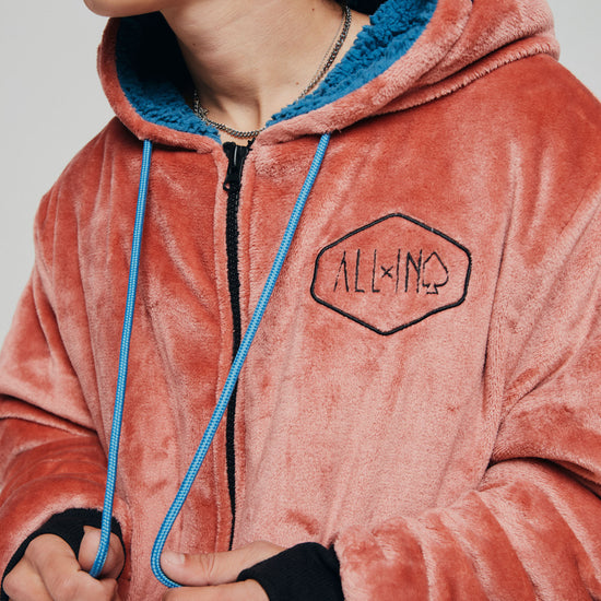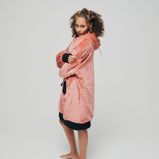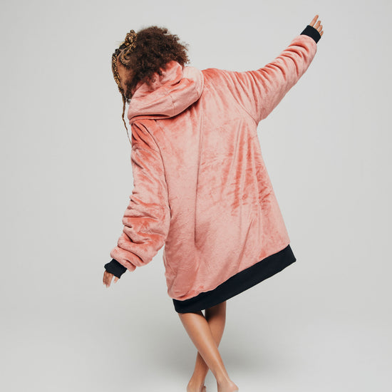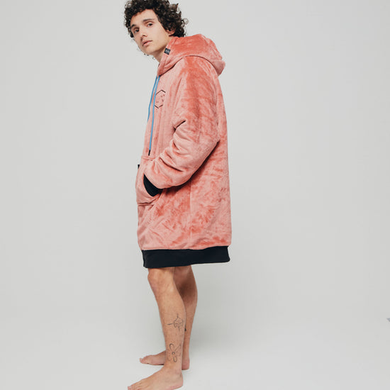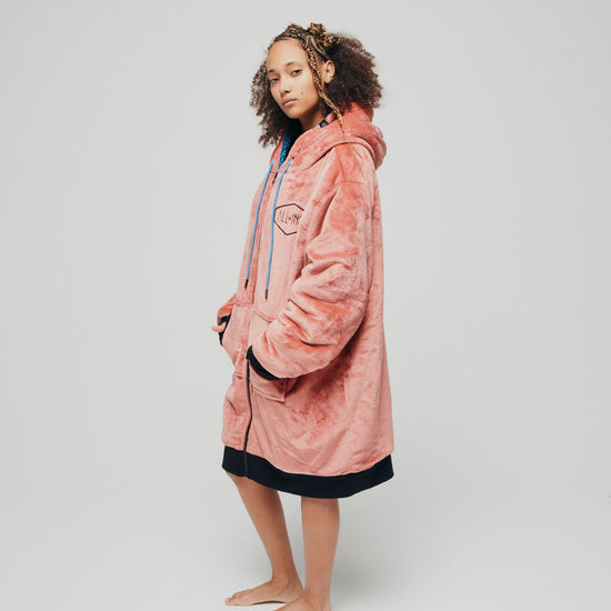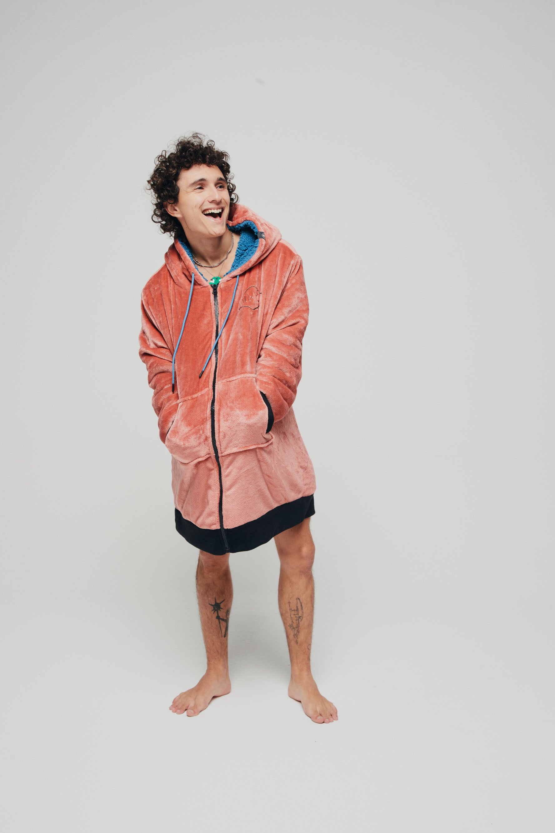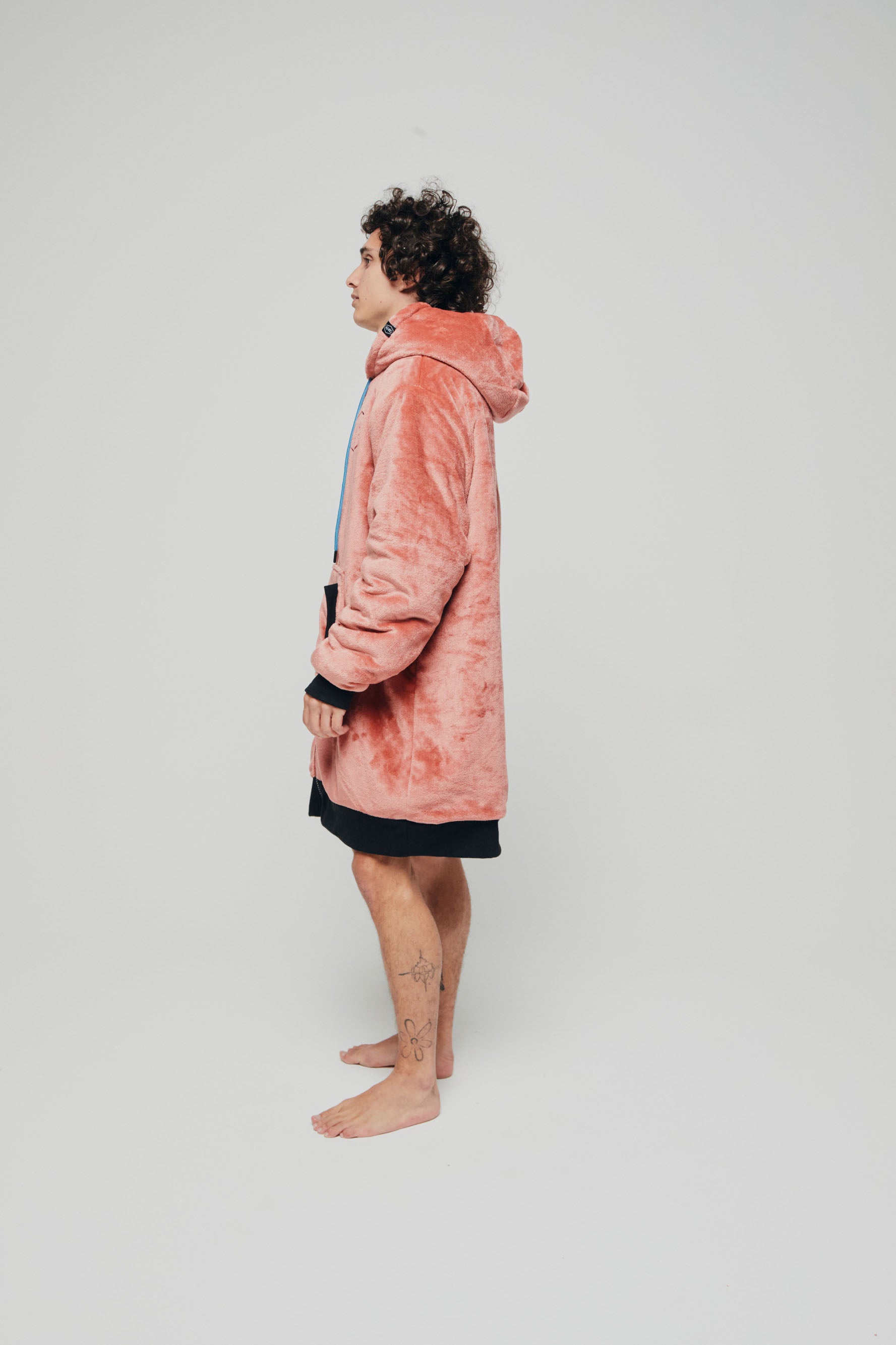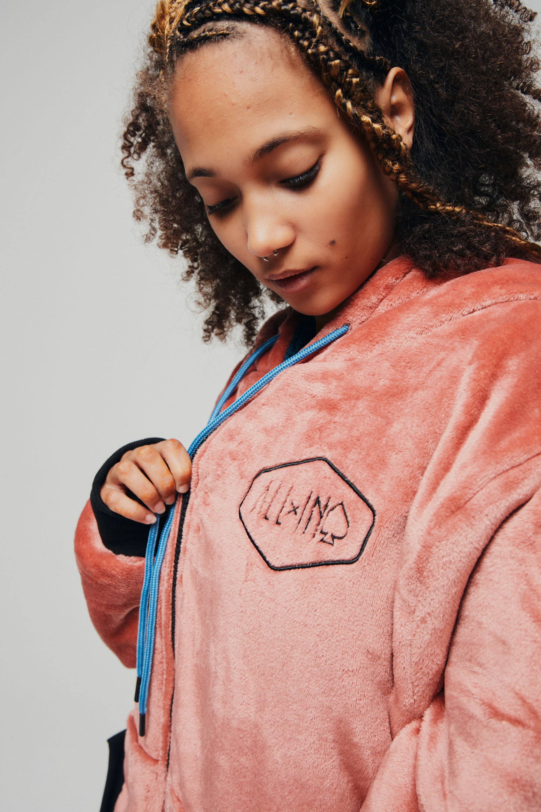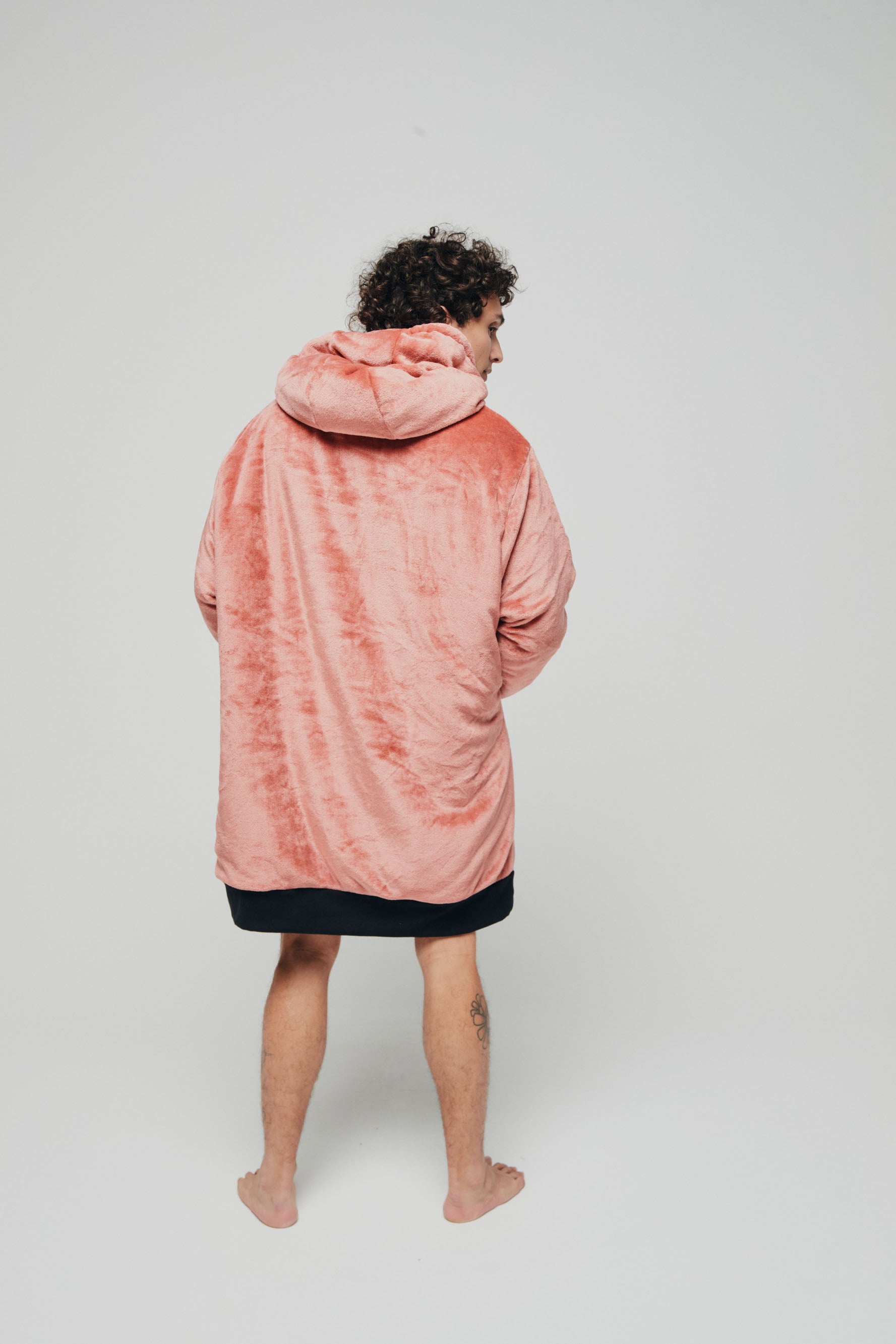 Comme un sweat à capuche : manches longues avec ouvertures pour les pouces, capuche doublée et ajustable avec liens, deux grandes poches