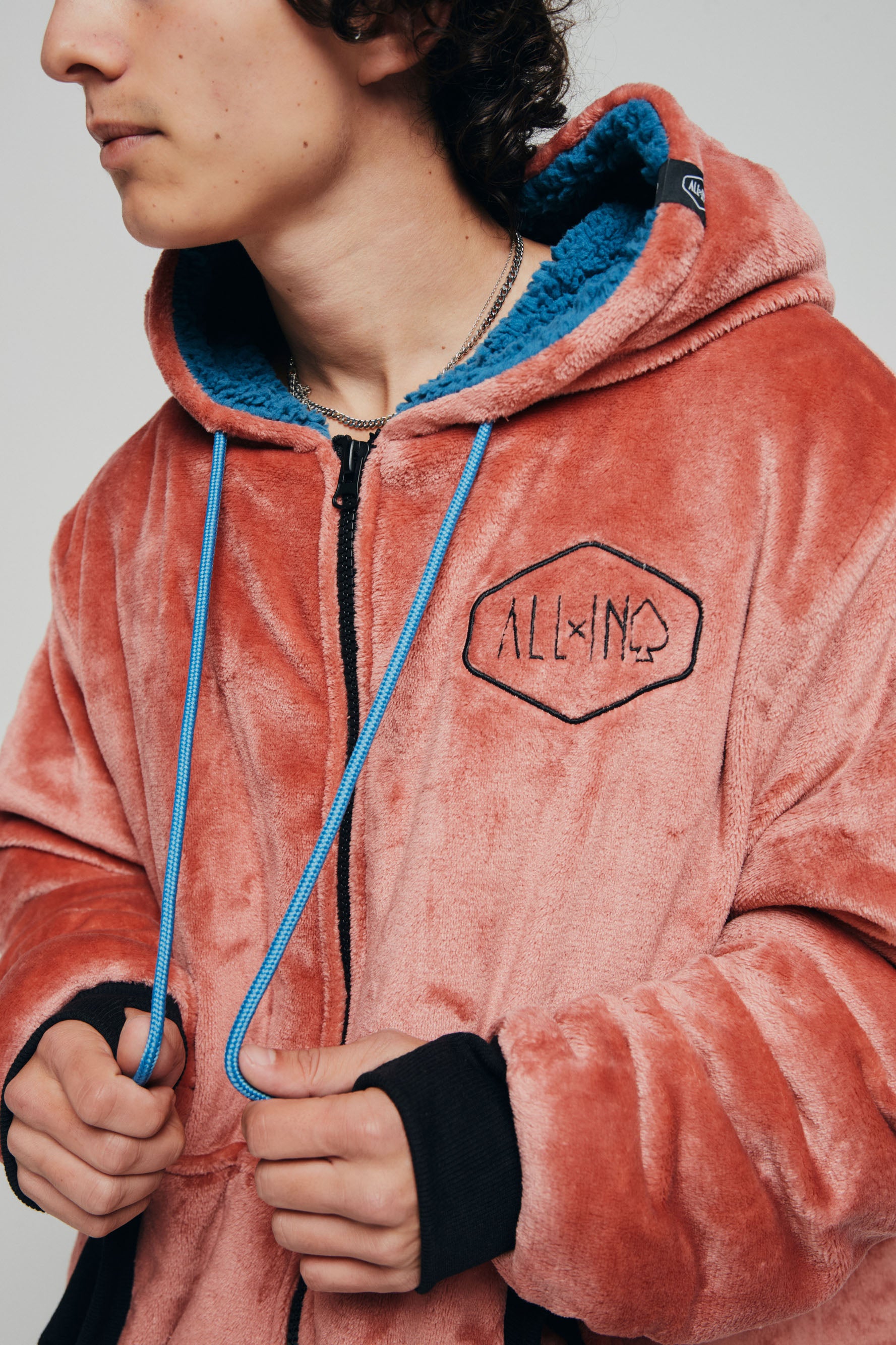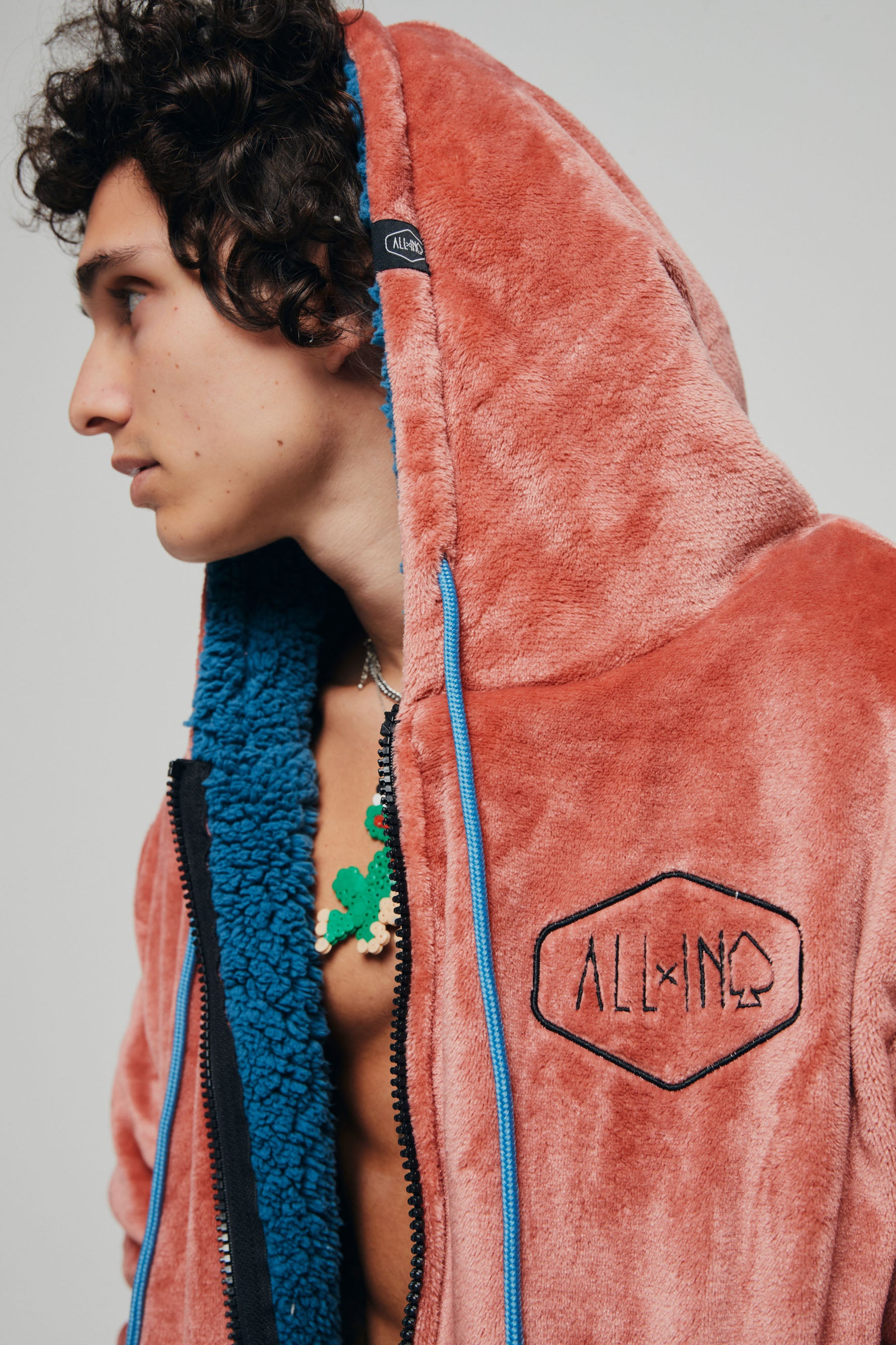 Weiches Material aus 100% recyceltem Material: außen Samt, innen Sherpa-Moumoute.