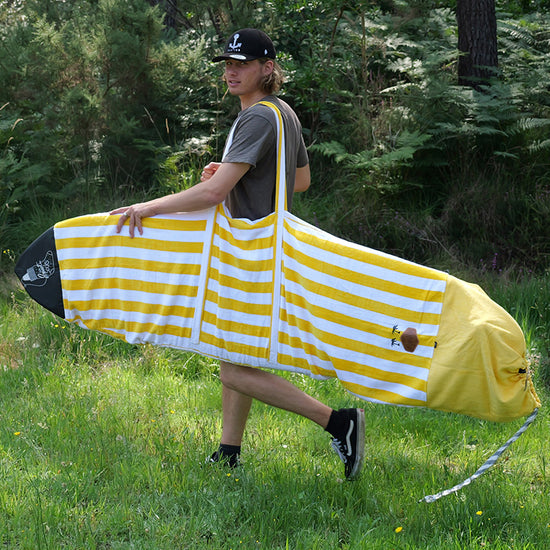 Votre planche, c'est votre bijoux, on le sait. Impossible de la transporter, la ranger, l'emmener en voyage sans une housse de protection adaptée et de qualité. En option pour le modèle housse chaussette pour vos planches de surf et de wakeboard. Une housse légère et refermable, facile à enfiler et à pince, douce pour votre planche, renforcée au nez et aux dérives. Que vous ayez un shortboard, un mini malibu, un longboard (tailles disponibles 6'0, 6'8, 7'3, 8′, 9′) ou une planche de wekaboard, choisissez vos couleurs ou motifs préférés.