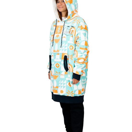 Mit dem ALL-IN Plaid Poncho erfüllen Sie sich ein wenig Ihren Traum: Chillen vor Netflix in einem warmen, weichen und bequemen Outfit, das Sie gar nicht mehr ausziehen wollen. Sie brauchen kein Plaid mehr vor dem Fernseher, sondern haben mit diesem Poncho im Kapuzenpulli-Stil die ideale und praktische Pulloverdecke gefunden, die Sie warm hält, ohne dass Sie Ihre Arme benutzen müssen. Natürlich haben wir für noch mehr Wohlbefinden eine Kapuze, Daumenöffnungen und eine große Tasche auf der Vorderseite hinzugefügt, in der Sie Ihre Hände wärmen können. Dank seiner lockeren Oversize-Passform ist er für die ganze Familie geeignet, und Sie können Ihre Beine für maximalen Komfort und Chill darin einkuscheln. Unser Plaid-Poncho ist mit seiner Außenseite aus Samt und seiner Innenseite aus kuscheligem Sherpa, alles zu 100 % recycelt und GRS-zertifiziert (Global Recycled Standard), der Gipfel der Weichheit. Möchten Sie die Farbe wechseln? Ganz einfach, er ist komplett wendbar! Aktivieren Sie den Cocooning-Modus und schonen Sie unseren Planeten mit diesem pflegeleichten Mischmodell, ohne dabei an Weichheit zu verlieren.
