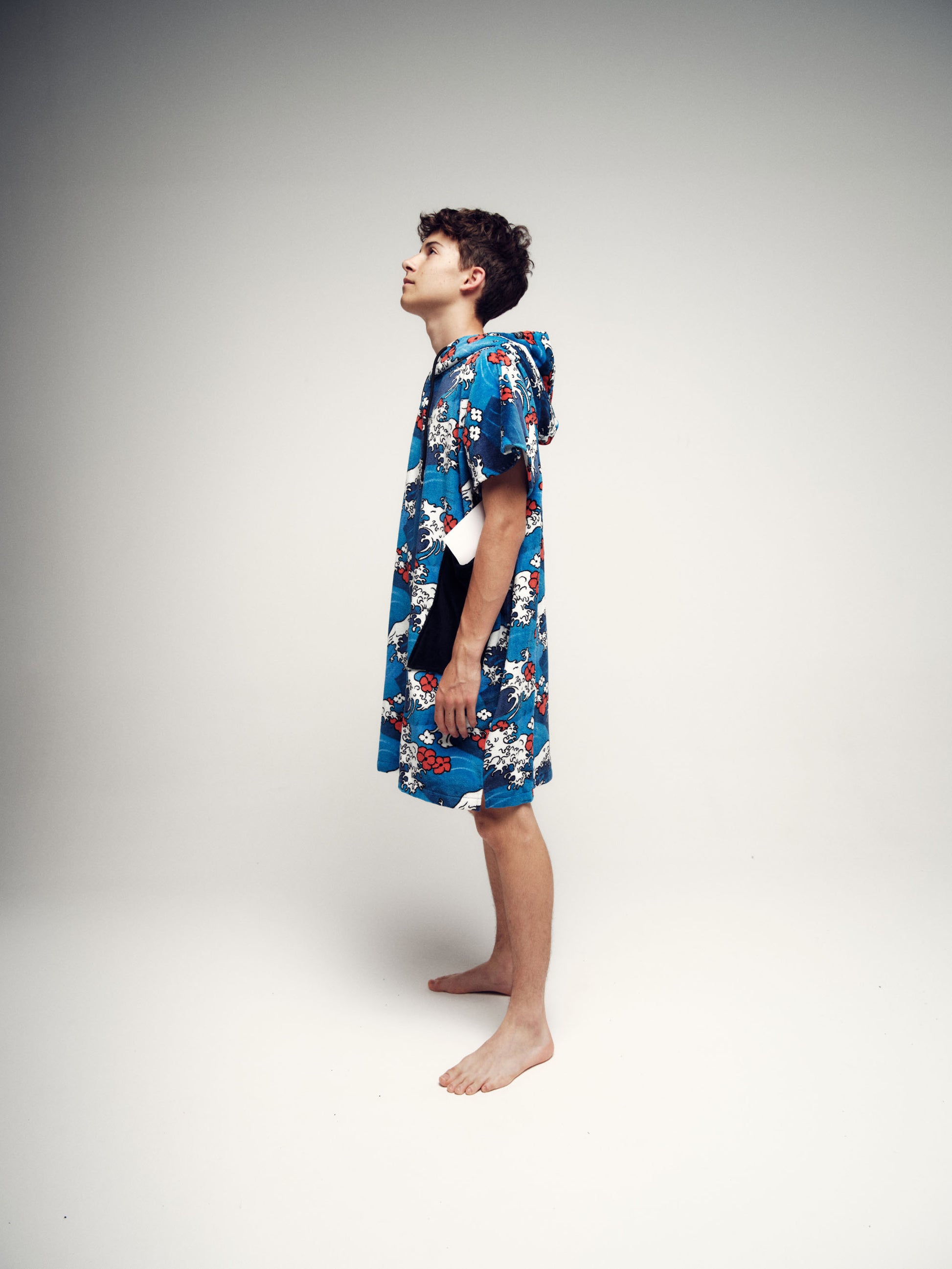 Idéal pour les kids qui veulent être stylés en sortant de l’eau, sans faire l’impasse sur le confort et la douceur. Grâce à sa forme triangulaire ou « en V », le haut de ce poncho est plus large que sur des modèles classiques, pour faciliter le mouvement au niveau des bras et des épaules. Plus pratique pour se changer, et chaleur et absorption conservées grâce au tissu éponge velours 100% Coton Organic et aux manches allongées, c’est pas le top ça ? Allez, on ajoute la cerise sur le gateau : une capuche doublée, une grande poche refermable devant et 2 poches sur les côtés. Votre ado va adorer…