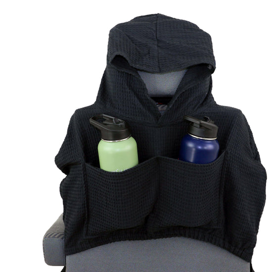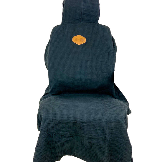 Isn't it a bit annoying to wait until you're dry to drive your car, or to cover your seat with a towel that's going to fall off before you even get on it? We think it is, so we created this protective car seat cover. Easy to slip on thanks to an elasticated base, it fits all vehicles. You'll appreciate the softness and absorbency of its machine-washable 100% cotton fabric, and the little extras we love: a "poncho" shape with hood that also protects the headrest, and 2 large pockets on the back directly accessible to rear passengers. Ideal for wax, water bottles, books, children's toys...