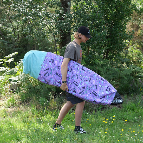 Votre planche, c'est votre bijoux, on le sait. Impossible de la transporter, la ranger, l'emmener en voyage sans une housse de protection adaptée et de qualité. En option pour le modèle housse chaussette pour vos planches de surf et de wakeboard. Une housse légère et refermable, facile à enfiler et à pince, douce pour votre planche, renforcée au nez et aux dérives. Que vous ayez un shortboard, un mini malibu, un longboard (tailles disponibles 6'0, 6'8, 7'3, 8′, 9′) ou une planche de wekaboard, choisissez vos couleurs ou motifs préférés.