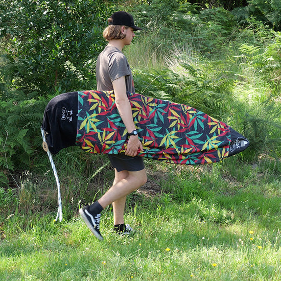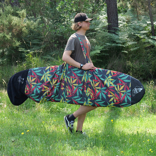 Your board is your jewel, we know it. It's impossible to transport it, store it, or take it on a trip without a suitable, high-quality protective cover. We opted for the sock cover model for your surfboards and wakeboards. A lightweight, resealable cover, easy to put on and fold, soft for your board, and reinforced at the nose and fins. Whether you have a shortboard, a mini Malibu, a longboard (available sizes 6'0, 6'8, 7'3, 8', 9') or a wekaboard, choose your favorite colors or patterns.