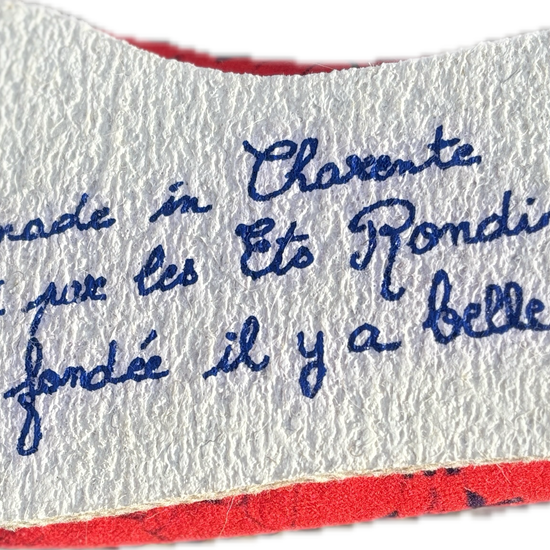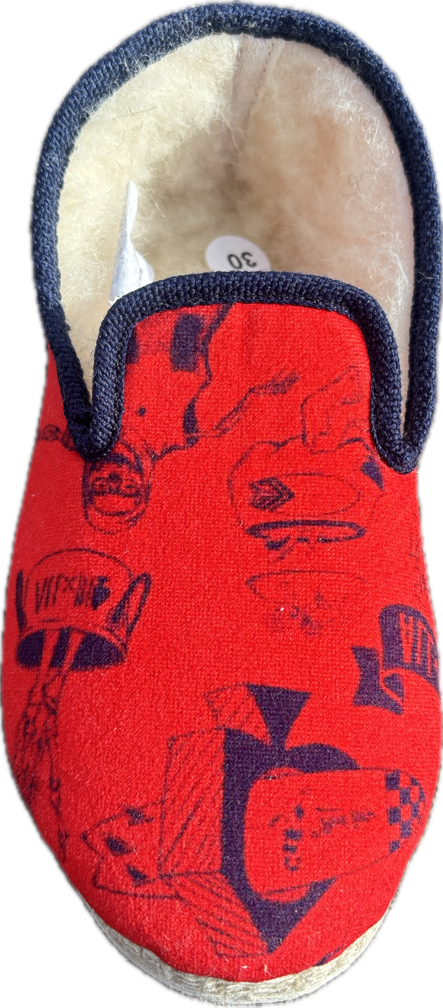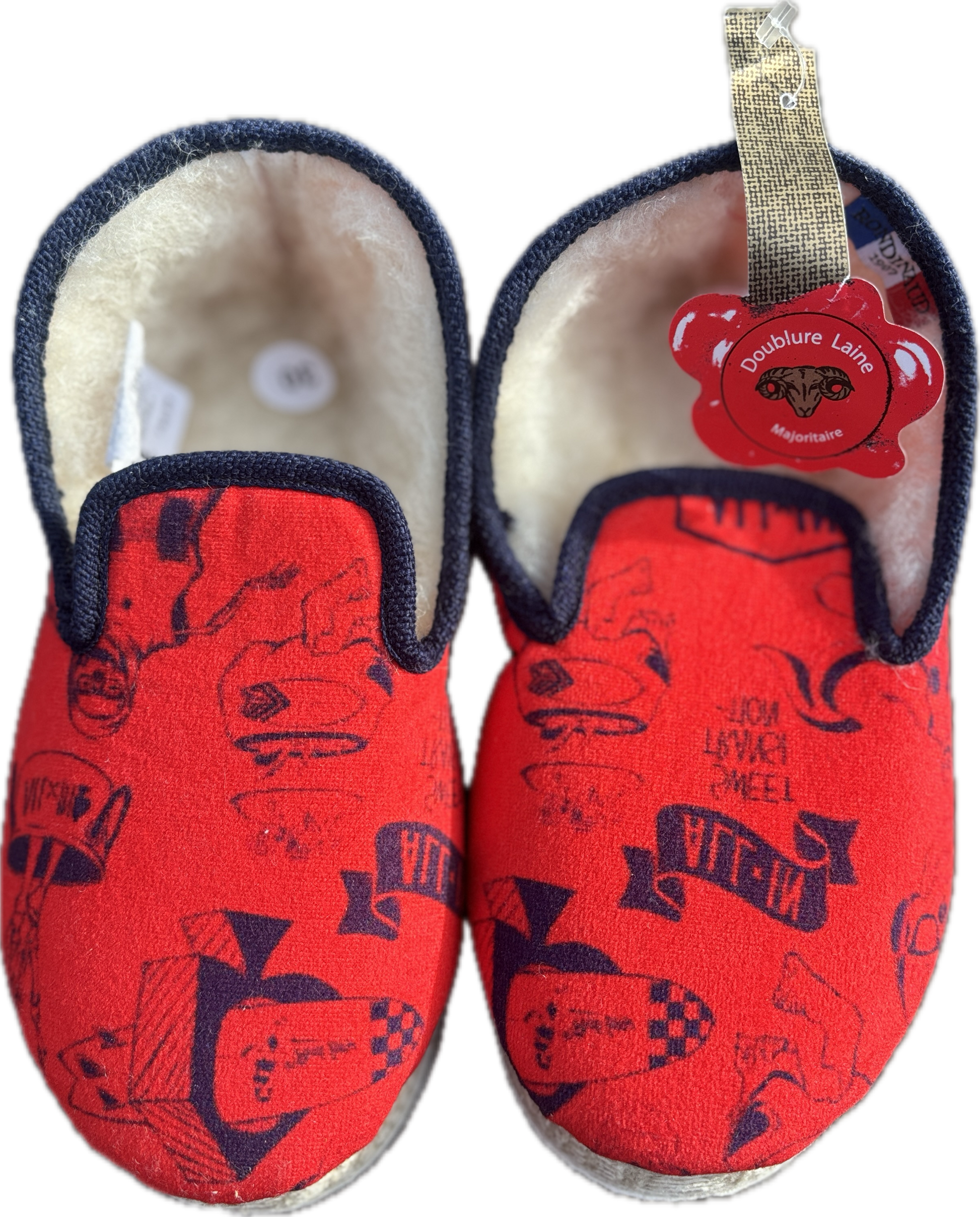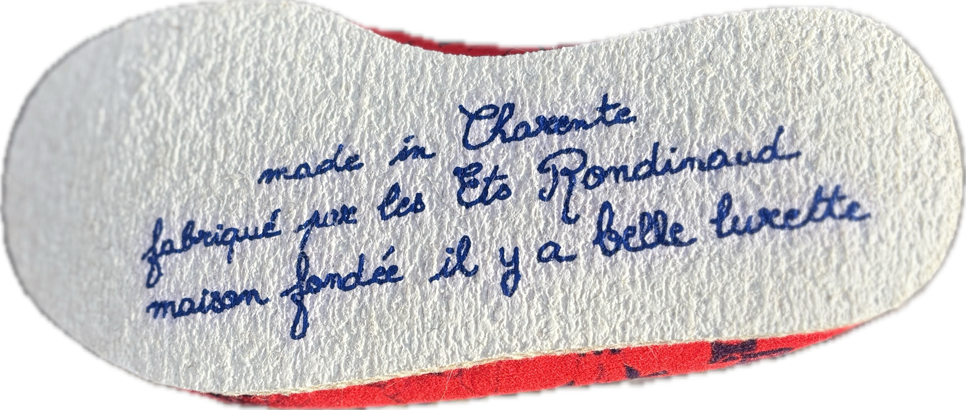 Collaboration avec la Maison Rondinaud (Charente) Entièrement fabriqué en France fabrication traditionnelle cousue-retournée 100% laine vierge semelle en feutre tissée à la main finition biais contrasté disponible du 30 au 34. En savoir plus…