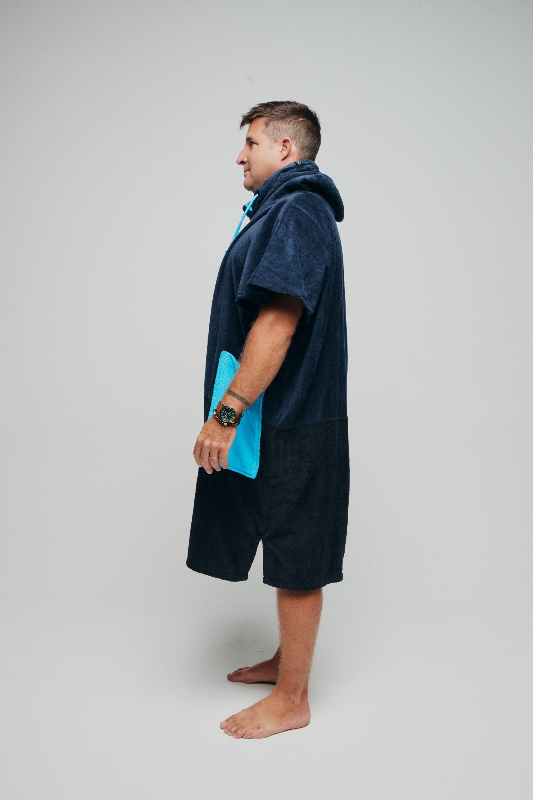 Thanks to its triangular or "V" shape, the top of this poncho is wider than on our Classic models. And as soft and comfortable as ever (100% cotton velour terry)! We've designed this poncho to give you greater freedom of movement in the arms and shoulders. How's that for practicality when changing clothes and warmth when wearing long sleeves? And then there's the icing on the cake: a lined hood and 2 large side pockets. We knew you'd love it...