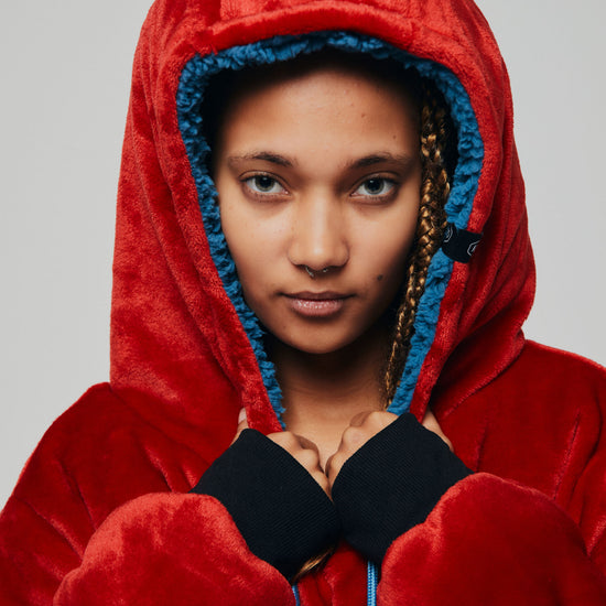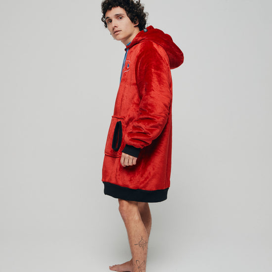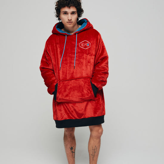 With the ALL-IN Plaid Poncho, you can make your dream come true: chill out in front of Netflix in a warm, soft and comfortable outfit that you won't want to leave. No more need for plaid in front of the TV, you've found the ideal, practical pullover blanket with this Hoodie-style Poncho, which lets you stay warm while retaining the use of your arms. Of course, for even greater comfort, we've added a hood, openings for your thumbs and a large pocket on the front to keep your hands warm. Thanks to its loose oversized cut, it's suitable for the whole family, and you can snuggle your legs inside for maximum comfort and chill. Our Plaid Poncho is the ultimate in softness, with its velvet exterior and soft sherpa interior, all 100% recycled and GRS (Global Recycled Standard) certified. Want to change color? Easy, it's fully reversible! Activate cocooning mode while respecting the planet with this mixed model, easy to care for without losing any of its softness.
