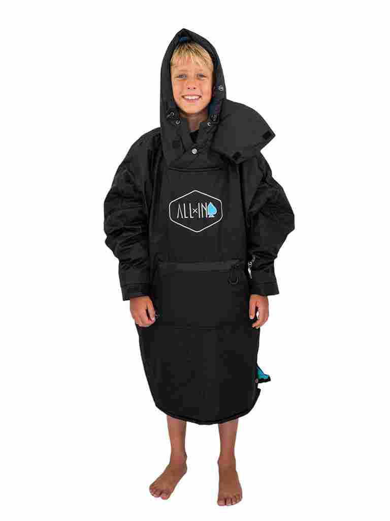 Junior waterproof poncho - Black / Turquoise