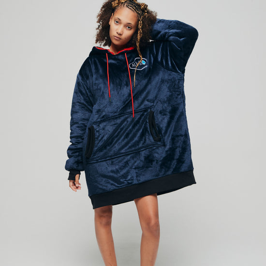 Con el Poncho a cuadros ALL-IN podrás hacer realidad tu sueño: relajarte frente a Netflix con una prenda cálida, suave y cómoda de la que no querrás separarte. No necesitas un plaid delante de la tele, has encontrado la práctica manta jersey perfecta con este Poncho estilo sudadera con capucha, que te permite estar calentita mientras mantienes el uso de los brazos. Por supuesto, para mayor comodidad, hemos añadido una capucha, aberturas para los pulgares y un gran bolsillo en la parte delantera para mantener las manos calientes. Con su corte holgado de gran tamaño, es perfecto para toda la familia, y puedes acurrucar las piernas en su interior para disfrutar del máximo confort y frío. Nuestro Poncho a cuadros es lo último en suavidad, con su exterior de terciopelo y su interior de suave sherpa, todo 100% reciclado y certificado GRS (Global Recycled Standard). ¿Quieres cambiar de color? Fácil, ¡es totalmente reversible! Activa el modo cocooning respetando el planeta con este modelo mixto fácil de cuidar sin perder un ápice de suavidad.