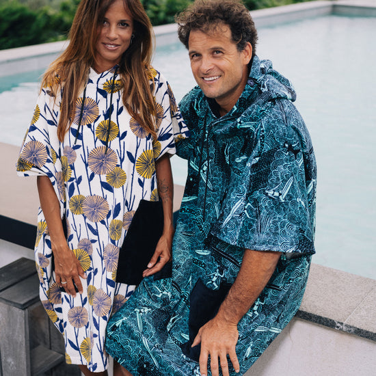 Adulte ou enfant, si vous n’avez pas encore un poncho de bain chez vous, c’est que vous n’aimez ni le confort ni la praticité ! Pour se sécher après un bain à la plage, à la piscine, à la maison ou après un sauna. Pour se changer et se protéger des regards et du froid en hiver après une session de surf, de wakeboard, de kitesurf, de windsurf… Pour chiller après la douche au camping, à la maison ou en voyage. Ils sont à la fois absorbants, chauds, doux et confortables. On a même un modèle imperméable pour affronter la pluie, et une version 2 en 1 qui se transforme en serviette de plage. Découvrez les ponchos hommes (normal ou XL – grande taille), femmes, junior et enfants (avec les petites oreilles d’ours sur la capuche, trop mignon), avec ou sans manches. N’hésitez plus et troquez vos peignoirs et serviettes en éponge contre un poncho 100% Coton Organic développé en France !