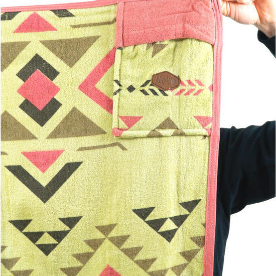Pratique jusque dans les détails : une pochette de rangement intégrée pour l’emmener facilement, un œillet avec cordon pour la suspendre où vous voulez, et une finition biais contrasté qui ne passe pas inaperçue.