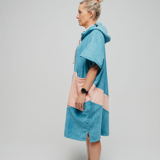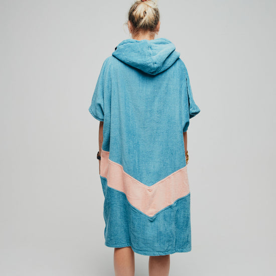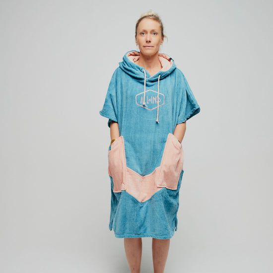 Gracias a su forma triangular o en "V", la parte superior de este poncho es más ancha que en nuestros modelos Classic. Y es tan suave y cómodo como siempre (rizo de terciopelo 100% algodón). Hemos diseñado este poncho para ofrecerte una mayor libertad de movimiento en los brazos y los hombros. Es más práctico para cambiarte de ropa y te mantiene más abrigada gracias a sus mangas más largas... ¿te parece un acierto? Y la guinda del pastel: una capucha forrada y 2 grandes bolsillos laterales. Sabíamos que te encantaría...