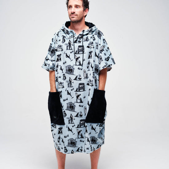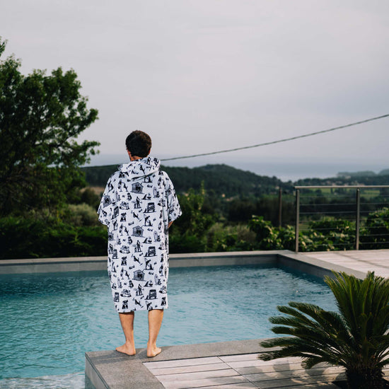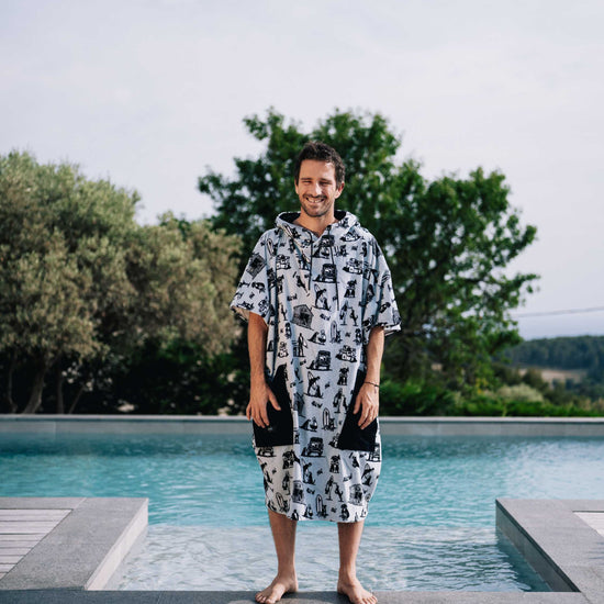 Adulte ou enfant, si vous n’avez pas encore un poncho de bain chez vous, c’est que vous n’aimez ni le confort ni la praticité ! Pour se sécher après un bain à la plage, à la piscine, à la maison ou après un sauna. Pour se changer et se protéger des regards et du froid en hiver après une session de surf, de wakeboard, de kitesurf, de windsurf… Pour chiller après la douche au camping, à la maison ou en voyage. Ils sont à la fois absorbants, chauds, doux et confortables. On a même un modèle imperméable pour affronter la pluie, et une version 2 en 1 qui se transforme en serviette de plage. Découvrez les ponchos hommes (normal ou XL – grande taille), femmes, junior et enfants (avec les petites oreilles d’ours sur la capuche, trop mignon), avec ou sans manches. N’hésitez plus et troquez vos peignoirs et serviettes en éponge contre un poncho 100% Coton Organic développé en France !