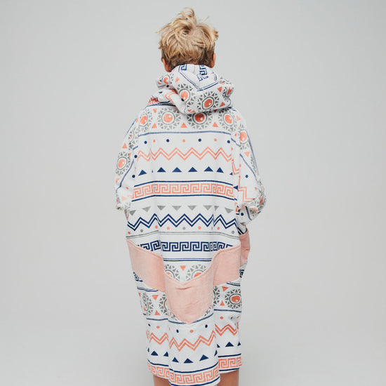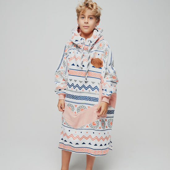 Idéal pour les kids qui veulent être stylés en sortant de l’eau, sans faire l’impasse sur le confort et la douceur. Grâce à sa forme triangulaire ou « en V », le haut de ce poncho est plus large que sur des modèles classiques, pour faciliter le mouvement au niveau des bras et des épaules. Plus pratique pour se changer, et chaleur et absorption conservées grâce au tissu éponge velours 100% coton et aux manches longues couvrant la totalité des bras, c’est pas le top ça ? Allez, on ajoute la cerise sur le gateau : une capuche doublée et 2 grandes poches sur les côtés. Votre ado va adorer…