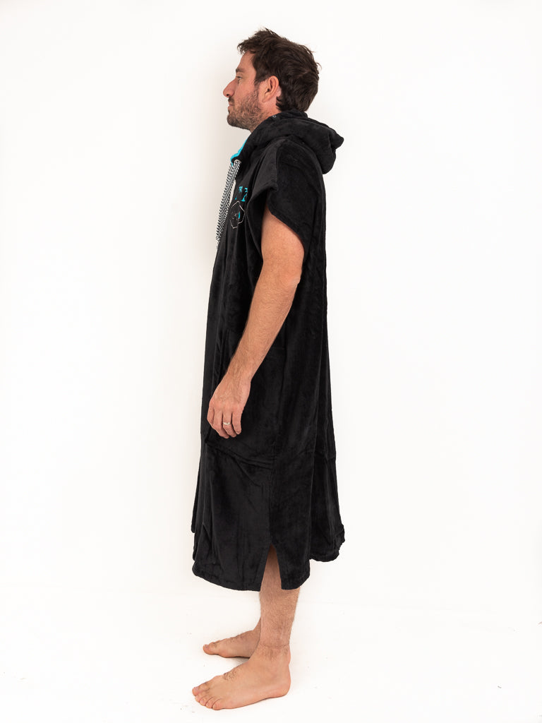 Poncho met capuchon voor volwassenen - Zwart / Turquoise