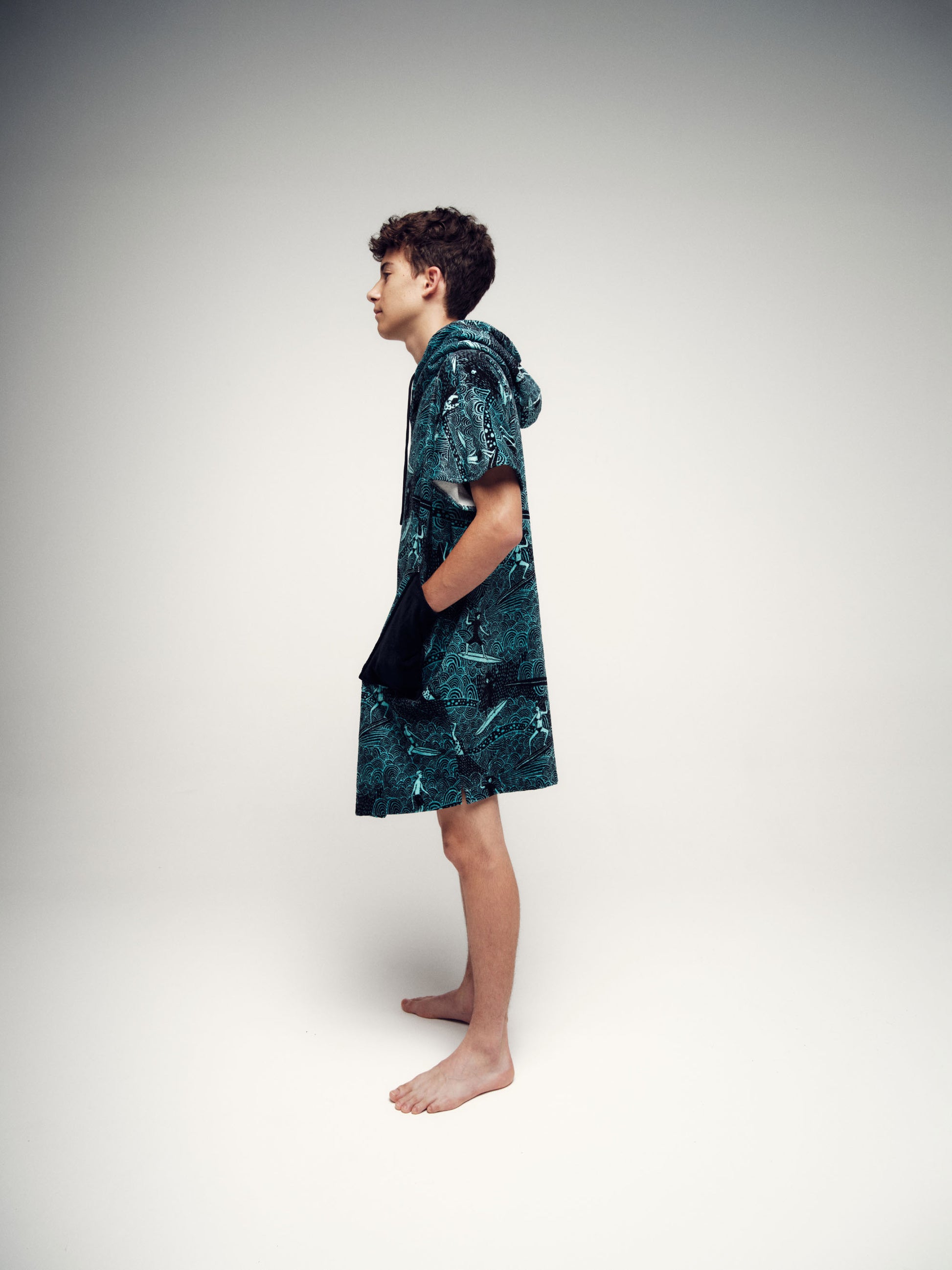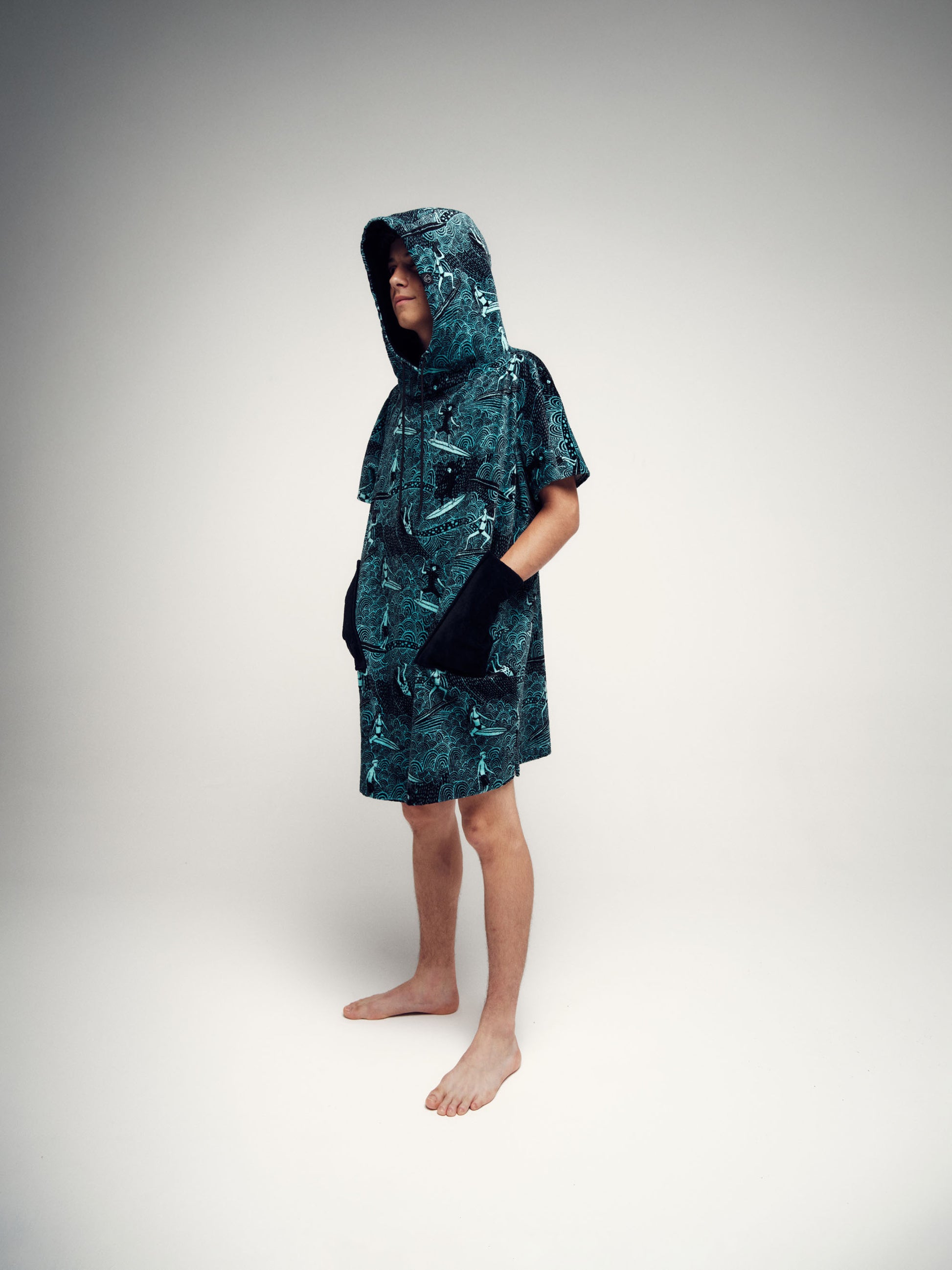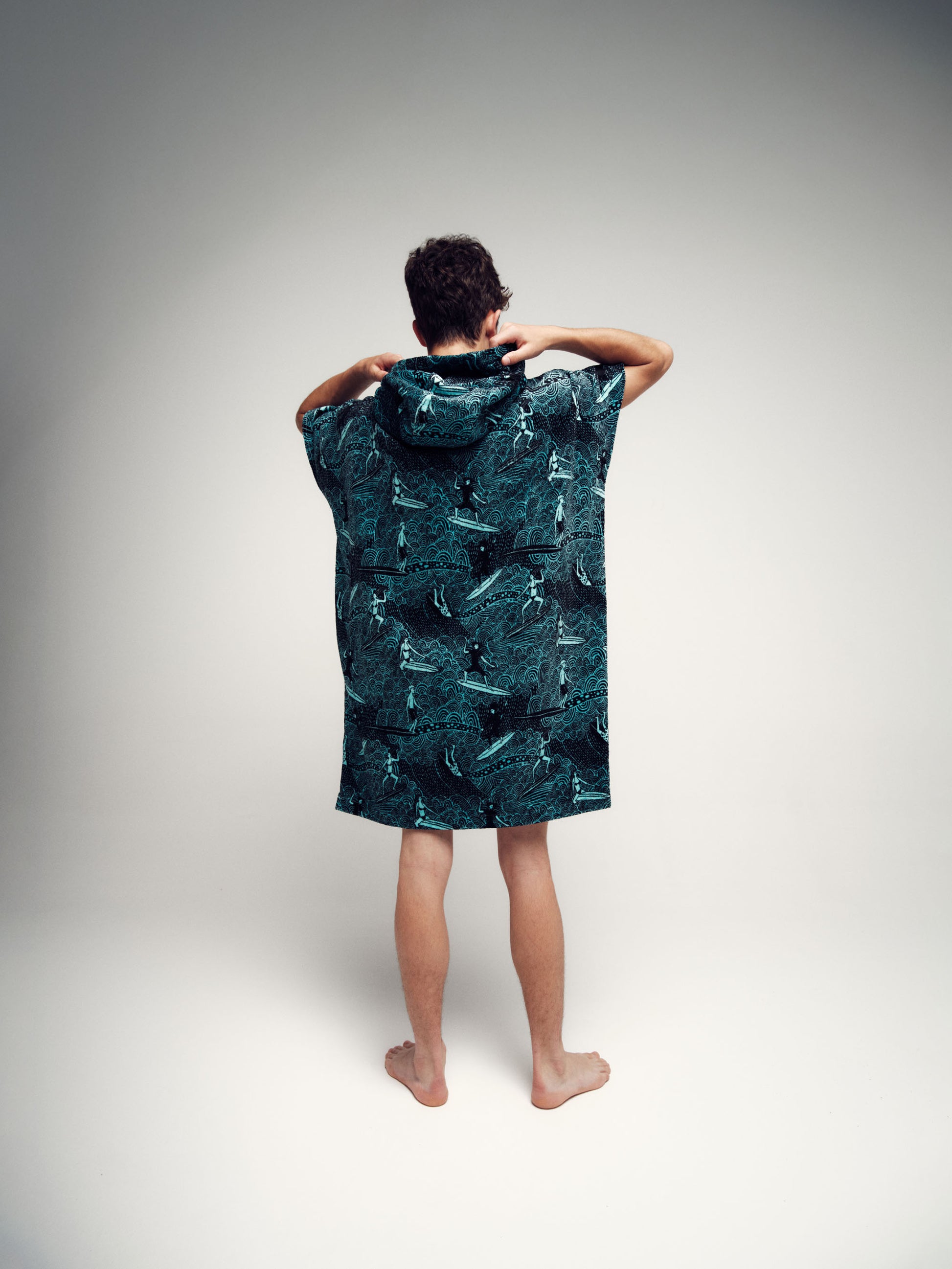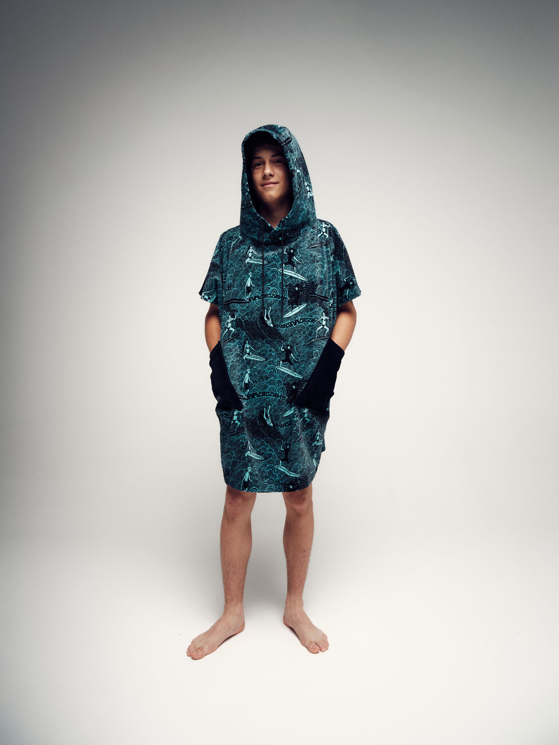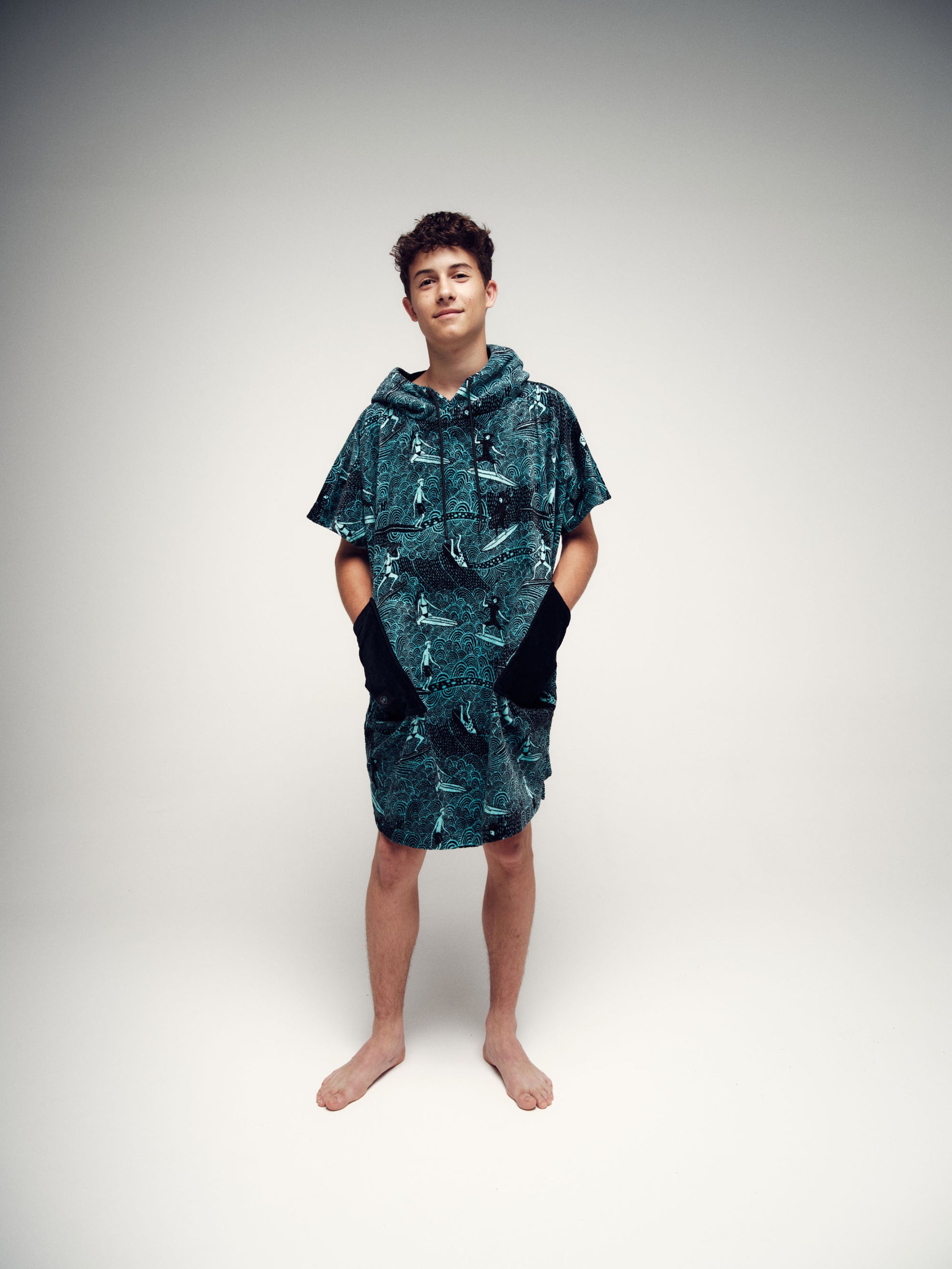 Idéal pour les kids qui veulent être stylés en sortant de l’eau, sans faire l’impasse sur le confort et la douceur. Grâce à sa forme triangulaire ou « en V », le haut de ce poncho est plus large que sur des modèles classiques, pour faciliter le mouvement au niveau des bras et des épaules. Plus pratique pour se changer, et chaleur et absorption conservées grâce au tissu éponge velours 100% Coton Organic et aux manches allongées, c’est pas le top ça ? Allez, on ajoute la cerise sur le gateau : une capuche doublée, une grande poche refermable devant et 2 poches sur les côtés. Votre ado va adorer…
