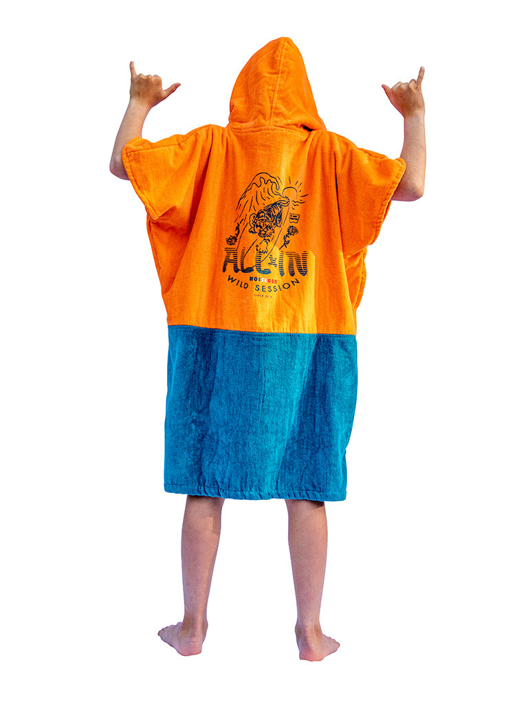 Kinderponcho 6 tot 9 jaar - Tigre Orange / Navy