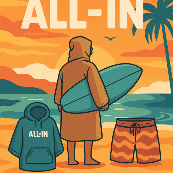 Valable sur l’ensemble de la collection ALL-IN : ponchos surf, textile, accessoires et essentiels after-session.