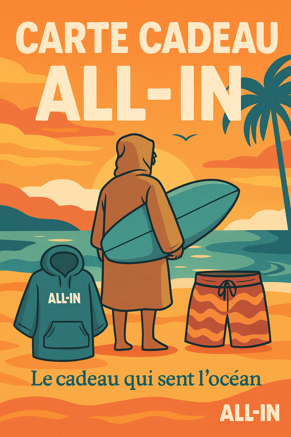 La carte cadeau ALL-IN est le cadeau parfait pour les amoureux de surf, d’océan et de lifestyle outdoor.
