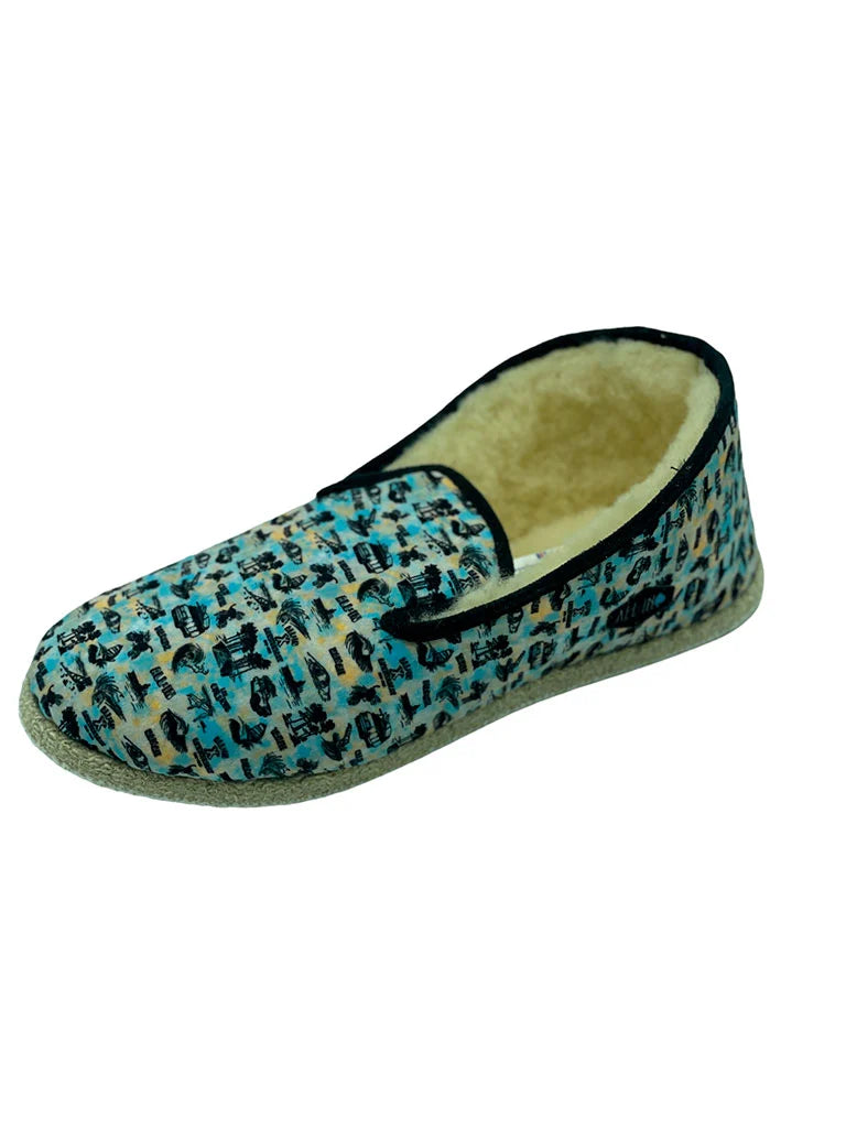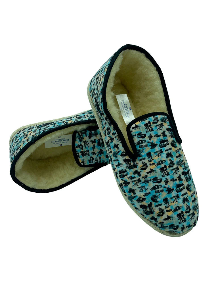 Samenwerking met Maison Rondinaud (Charente) Volledig gemaakt in Frankrijk traditionele steek-en-draai fabricage 100% scheerwol handgeweven vilten zool contrasterende biaisafwerking verkrijgbaar in de maten 35 tot 47. Meer informatie...