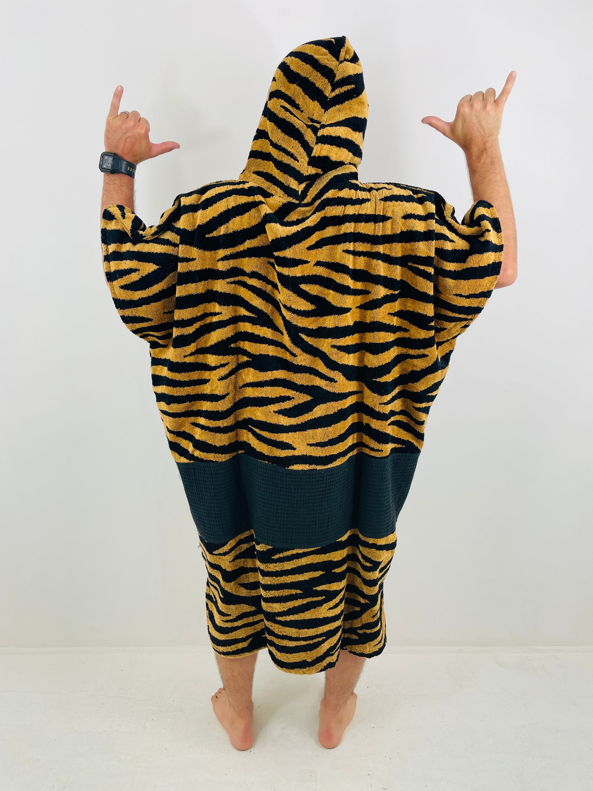 Poncho adulte coupe V - ZEBRA BLACK WAFFLE