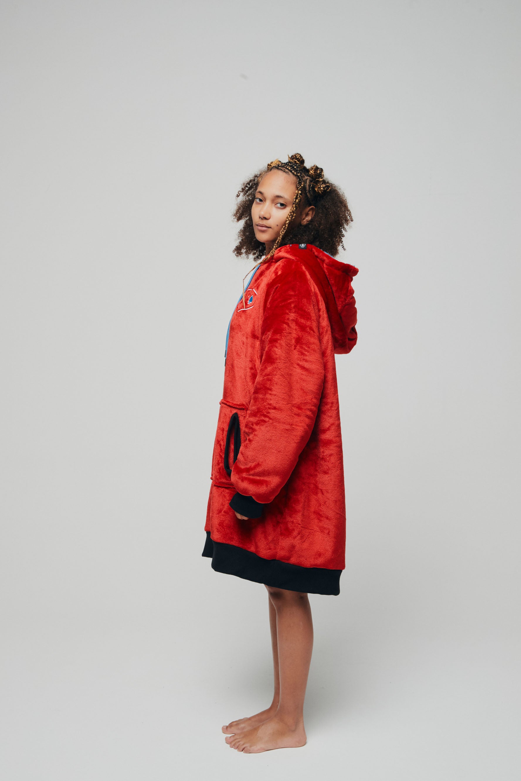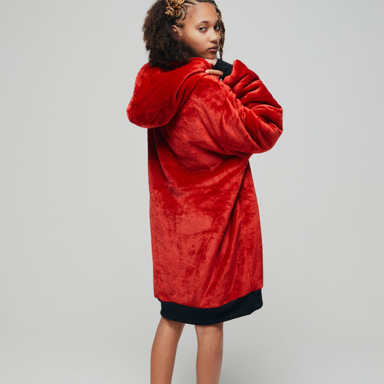 Avec le Poncho Plaid ALL-IN, vous allez un peu réaliser votre rêve : chiller devant Netflix dans une tenue chaude, douce et confortable, que vous n’aurez plus envie de quitter. Plus besoin de plaid devant la télé, vous avez trouvé la couverture pull idéale et pratique avec ce Poncho façon Sweat à Capuche, qui vous permet de rester au chaud en gardant l’usage de vos bras. Bien sûr, pour encore plus de bien-être, on lui a ajouté une capuche, des ouvertures pour les pouces et une grand poche sur le devant pour réchauffer vos mains. Grâce à sa coupe ample oversize, il conviendra à toute la famille et vous pourrez blottir vos jambes à l’intérieur pour un max de confort et de chill. Notre Poncho Plaid est au top de la douceur avec son extérieur en velours et son intérieur en sherpa moelleux, le tout 100% recyclé et certifié GRS (Global Recycled Standard). Envie de changer de couleur ? Facile, il est entièrement réversible ! Activez le mode cocooning en respectant la planète avec ce modèle mixte et facile d’entretien sans perte de douceur.