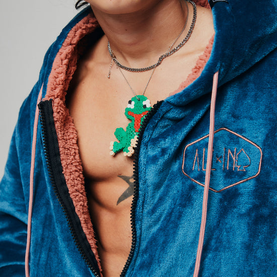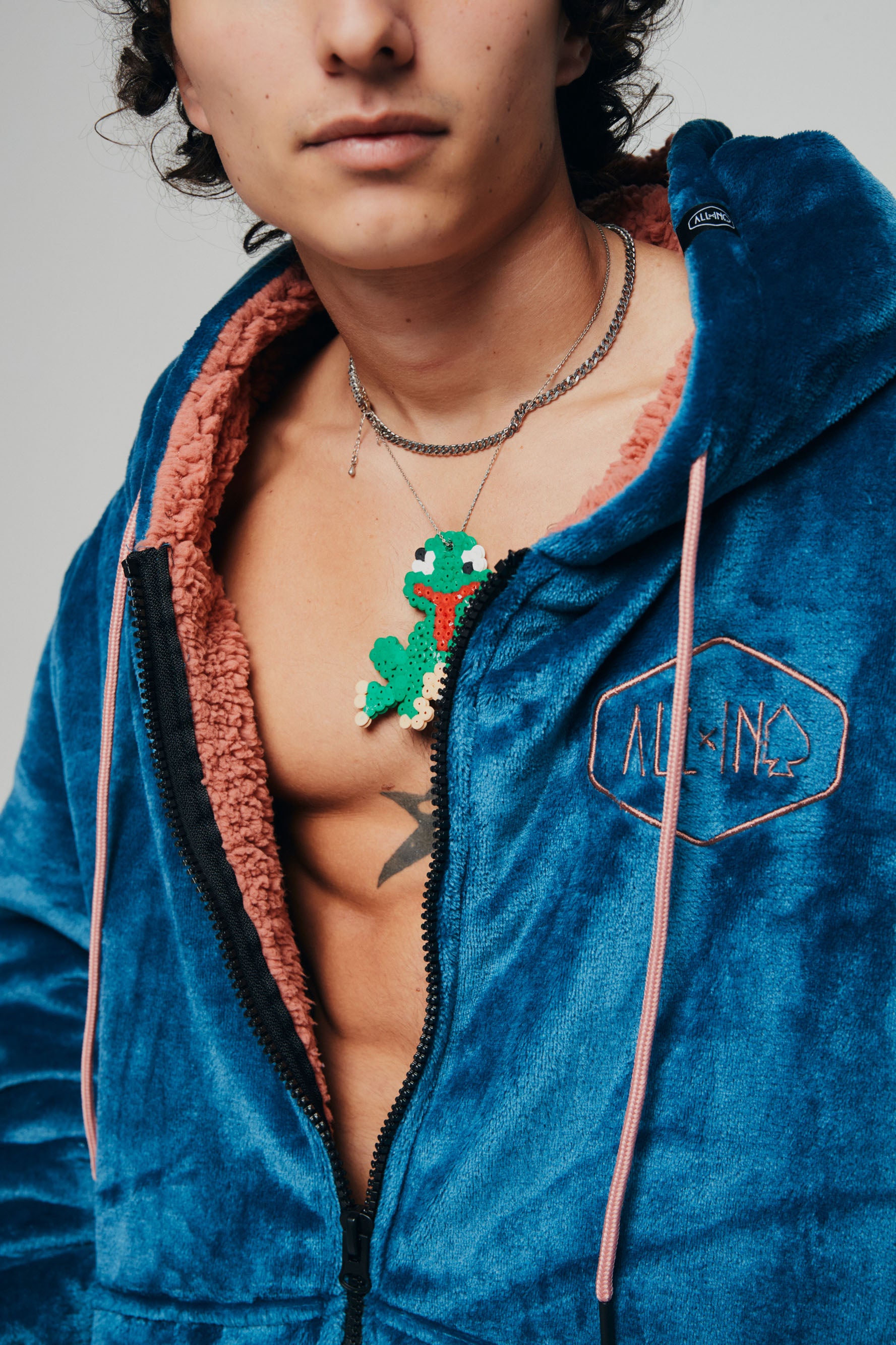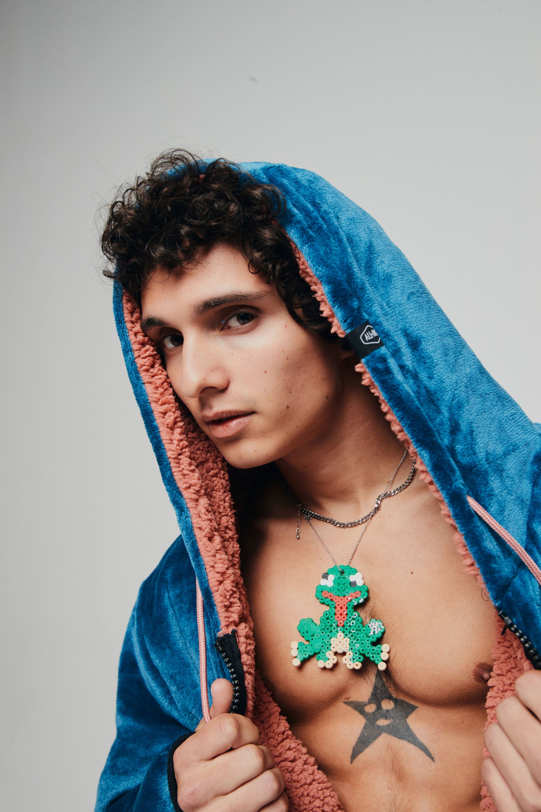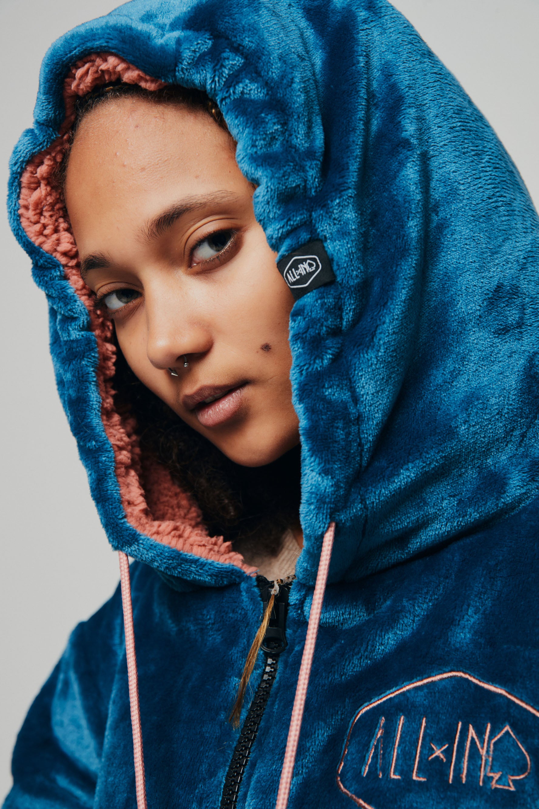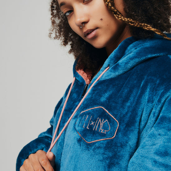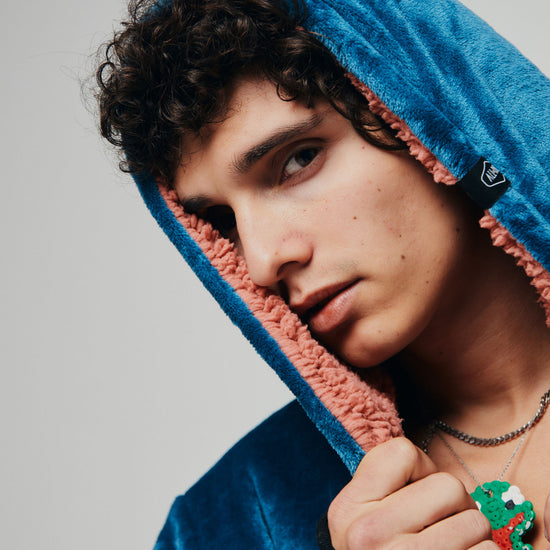 - Matière douce 100% recyclée certifiée GRS (Global Recycled Standard) : velours à l’extérieur, moumoute sherpa à l’intérieur.