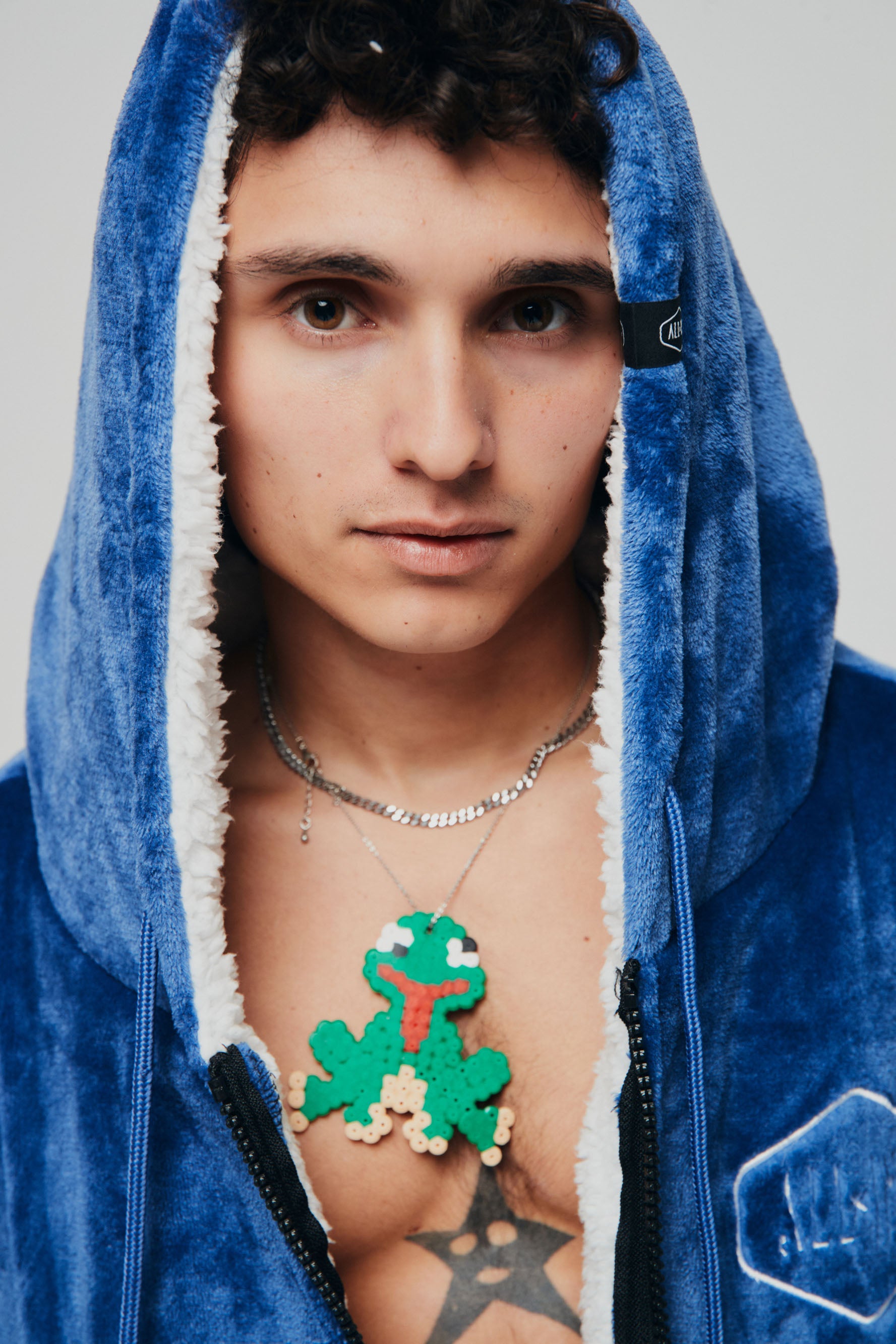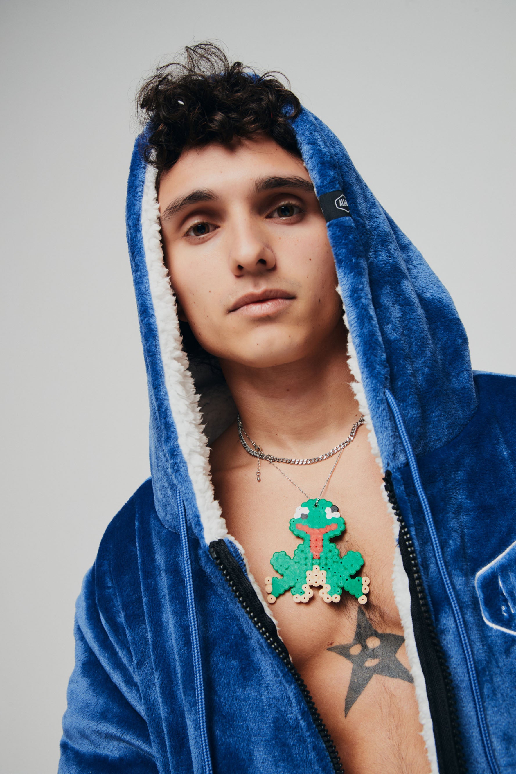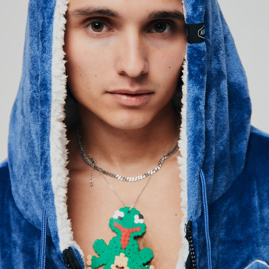 - Matière douce 100% recyclée certifiée GRS (Global Recycled Standard) : velours à l’extérieur, moumoute sherpa à l’intérieur.